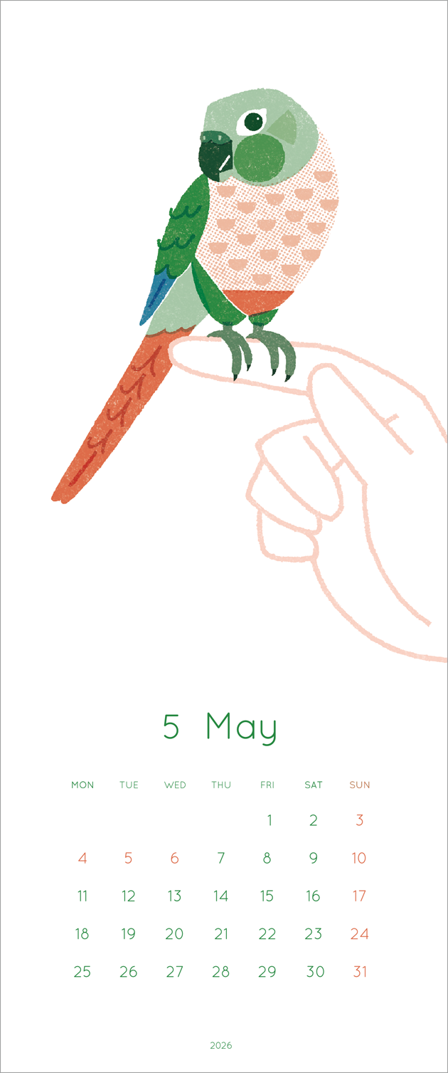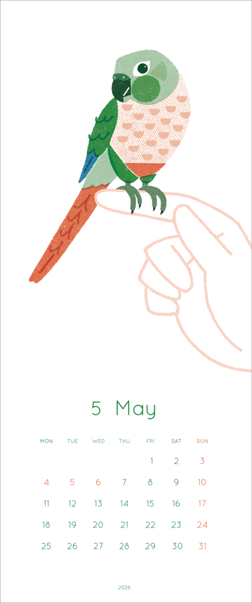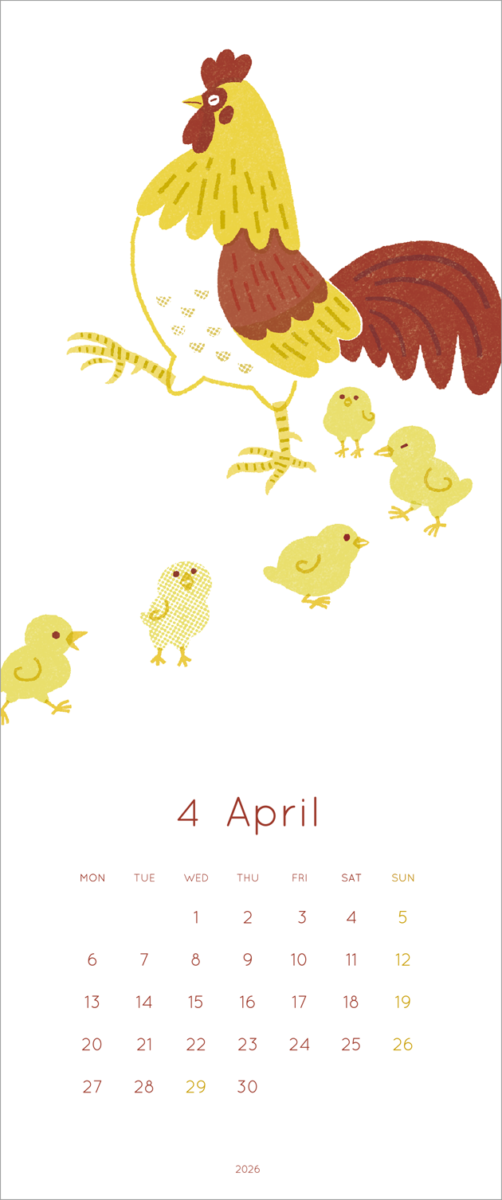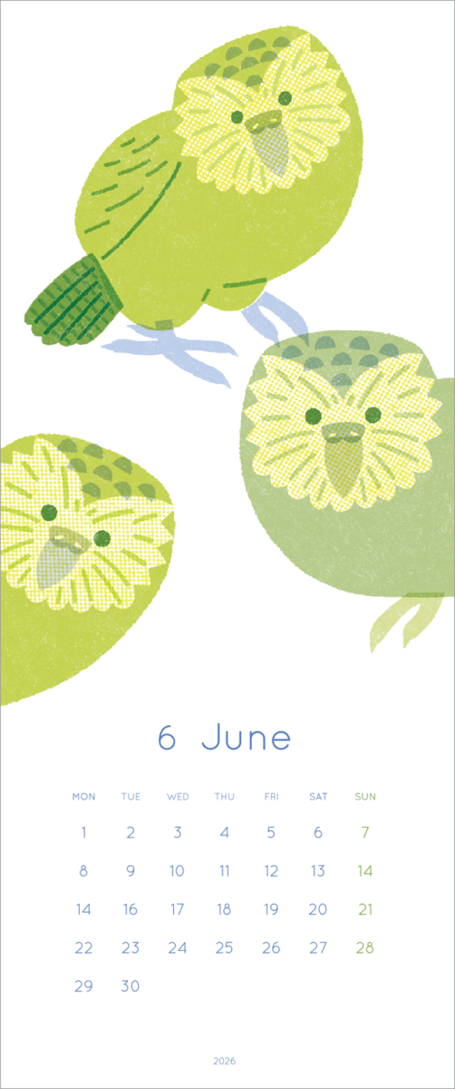 2026年の鳥のイラストカレンダーを制作、展示しました。