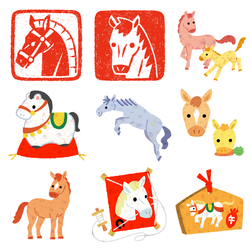 スマートフォンアプリ「スマホで年賀状」のスタンプのまとめページ